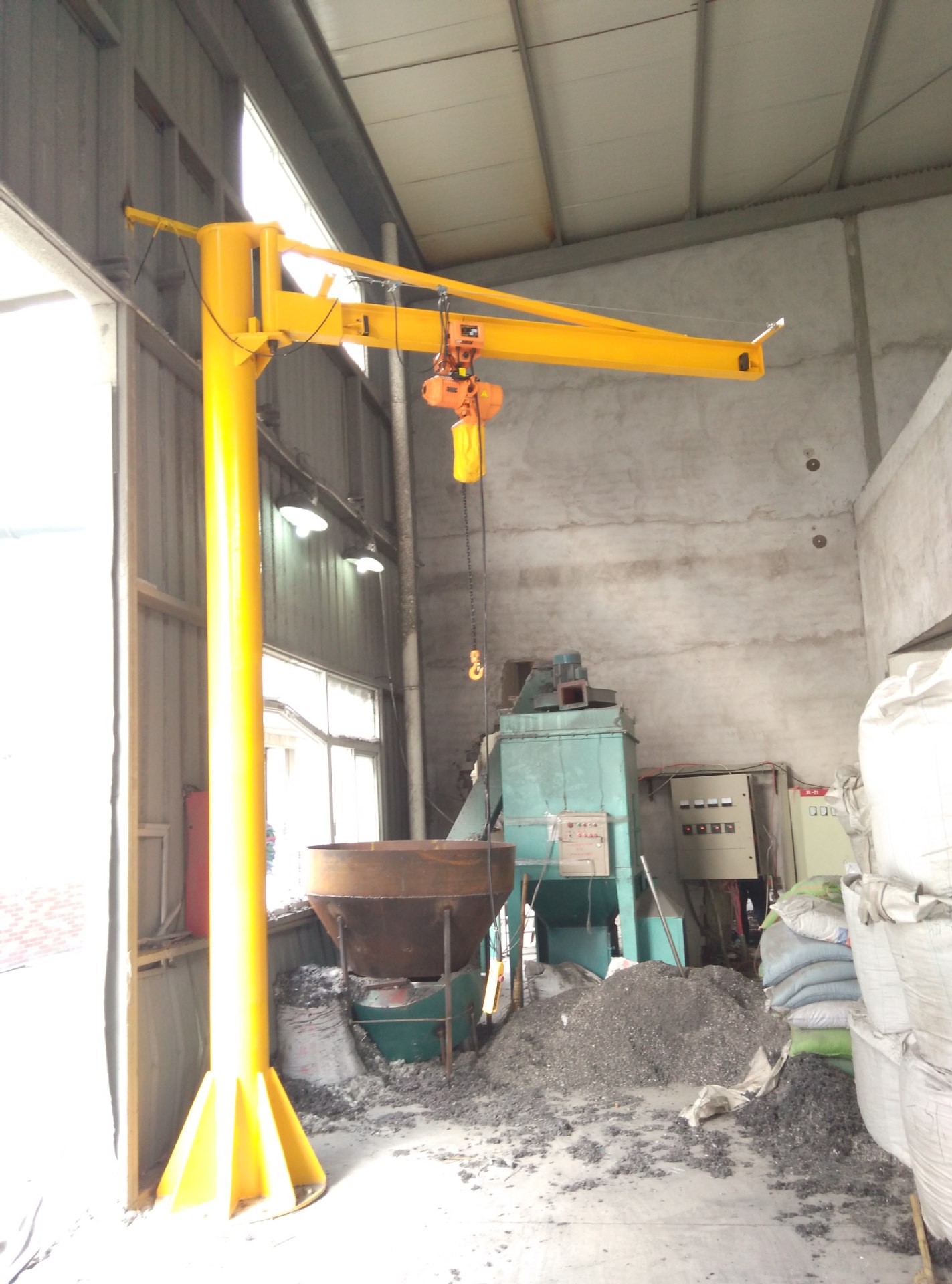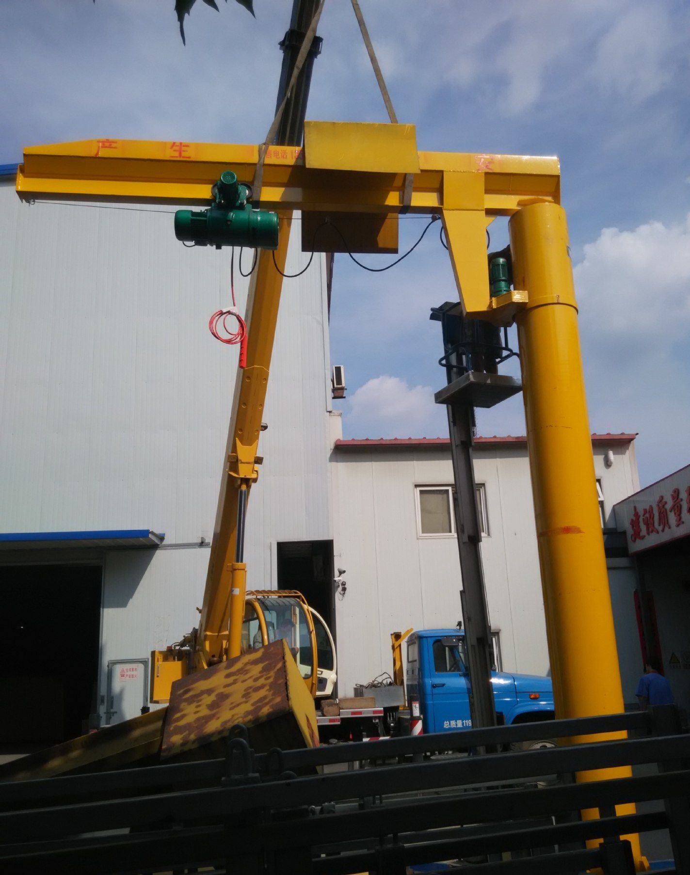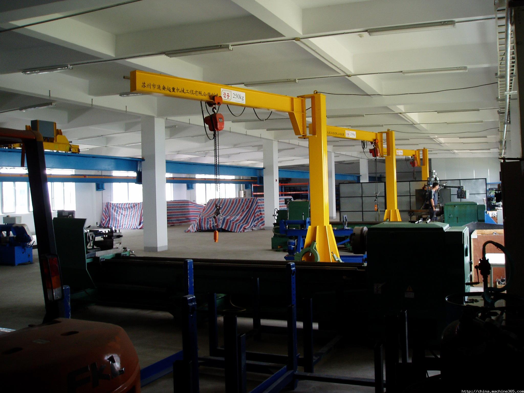 起升、運行和回轉(zhuǎn)均為電動,結(jié)構(gòu)緊湊,適用于低凈空,回轉(zhuǎn)角度360°或≤270°電動定柱式起重機(jī),設(shè)計符合中國機(jī)械行業(yè)標(biāo)準(zhǔn),工作強(qiáng)度為中型,滿足JB/T 8906-1999的要求。起重機(jī)旋臂為工字鋼結(jié)構(gòu),經(jīng)久耐用;結(jié)構(gòu)尺寸小,特別有利于提高吊鉤行程。