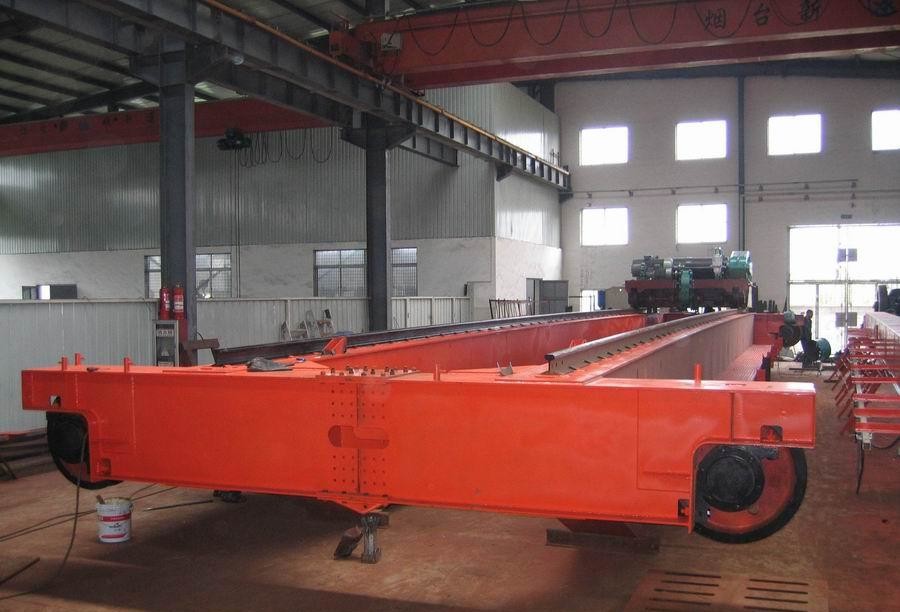 QL電磁掛梁起重機(jī)安裝完成是橋架兩端通過運(yùn)行裝置直接支撐在高架軌道上的橋架型起重機(jī)。它由橋架(包括主梁和端梁)、起重小車、大車運(yùn)行機(jī)構(gòu)和電氣控制系統(tǒng)等部分組成。起重小車上裝有起升機(jī)構(gòu)和小車運(yùn)行機(jī)構(gòu)在橋架主梁上沿小車軌道橫向運(yùn)行;起重機(jī)沿廠房或露天貨場的高架軌道縱向運(yùn)行,其掛梁方向分為與主梁平行和與主梁垂直兩種,并在掛梁下方裝有電磁吸盤,通過電磁吸盤完成物料搬運(yùn)工作。
